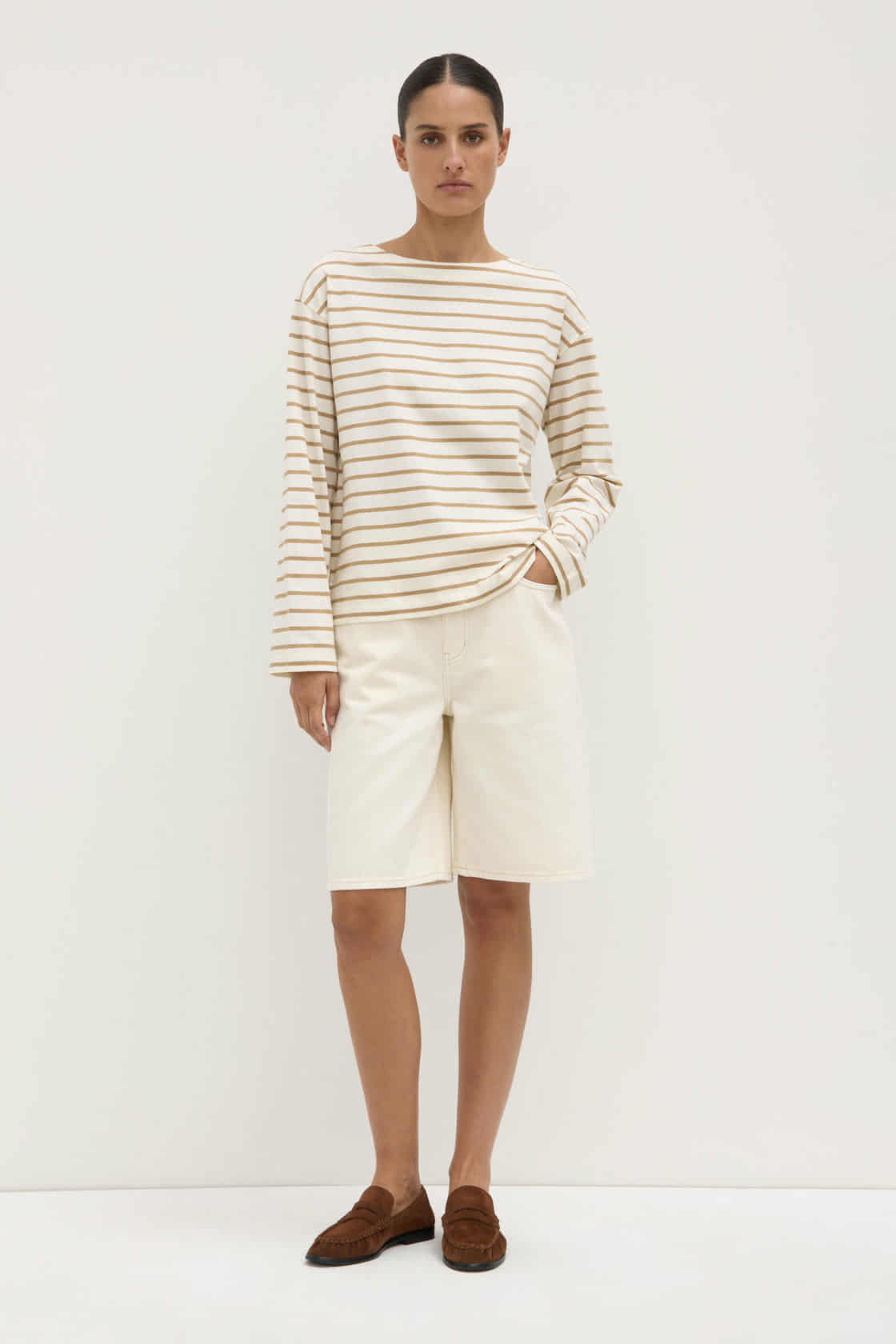 Assembly Label Bonne Long Sleeve Stripe Tee Tan